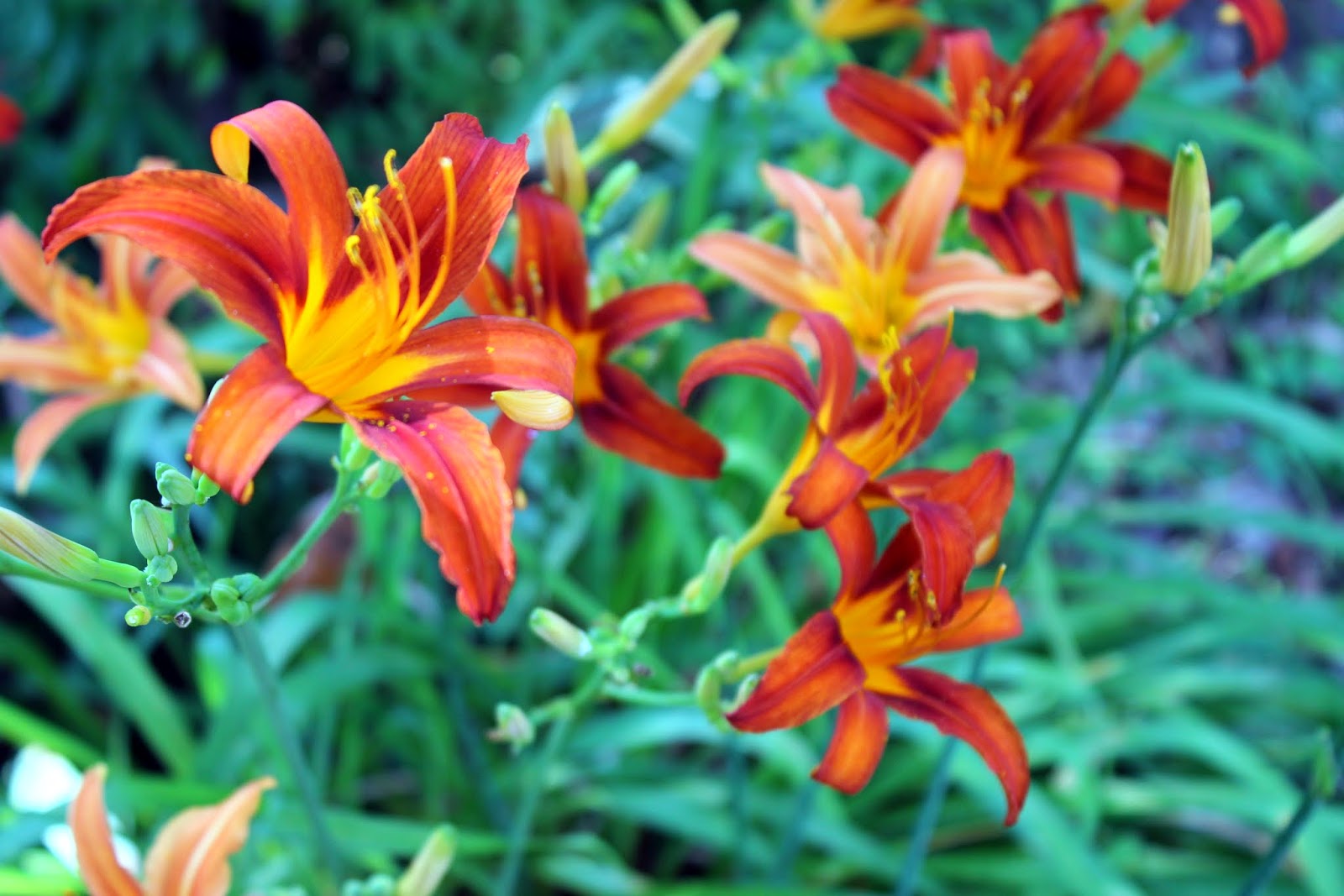 July is an amazing time in the mountains. It is the ending of the day lily season here in my garden. The first lilies are the orange ones that seem to grow on sides of the roads as well as in gardens. The yellow lily I discovered while helping to deadhead lilies at the Cancer Center Garden is fragrant. She smells very nice.